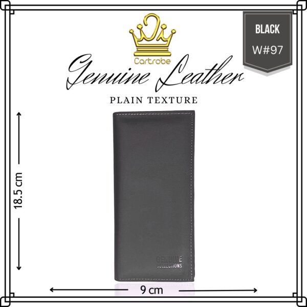 This spacious wallet features a plain texture and is crafted from genuine leather. It includes multiple pockets for cards and cash, making it perfect for daily use.